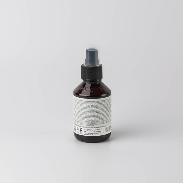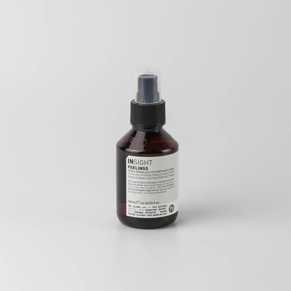 Higienizante en spray listo para usar, para manos o superficies. Elaborado con el 99% de ingredientes de origen natural, además de las manos, también puede utilizarse para sanitizar: superficies, ambientes o el interior de vehículos. 70% Alcohol de origen natural. Glicerina de origen natural, respeta el equilibrio natural de la piel, proporcionándole confort y suavidad. Tea tree oil, aceite esencial obtenido de la Melaleuca alternifolia, conocida por sus propiedades antibacterianas y antiinflamatorias. Zumo biológico de aloe, rico en sustancias valiosas como vitaminas, enzimas y aminoácidos esenciales, gracias a sus propiedades lenitivas y refrescantes protege la piel de la deshidratación. Extracto biológico de salvia, conocido por su acción antibacteriana y purificadora